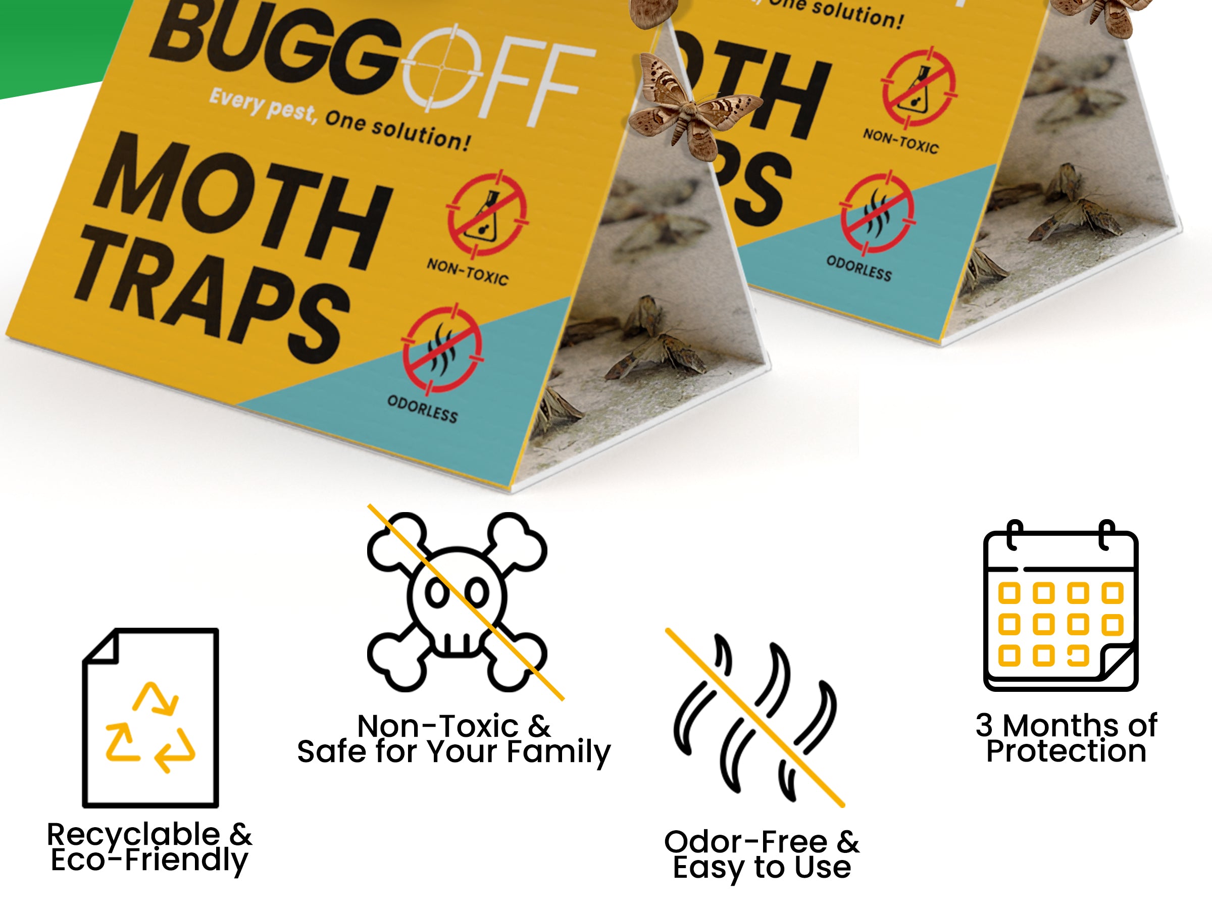 • Easy to Use and Long-Lasting — Just unbox, peel, fold and place the clothes moth traps in your closet or any location with moths. Buggoff moth traps  can be used to provide three months of laundry and closet moth prevention per trap. No wafers needed, this is a great preventative solution for how to get rid of clothes moths and keep your closet moth-free.