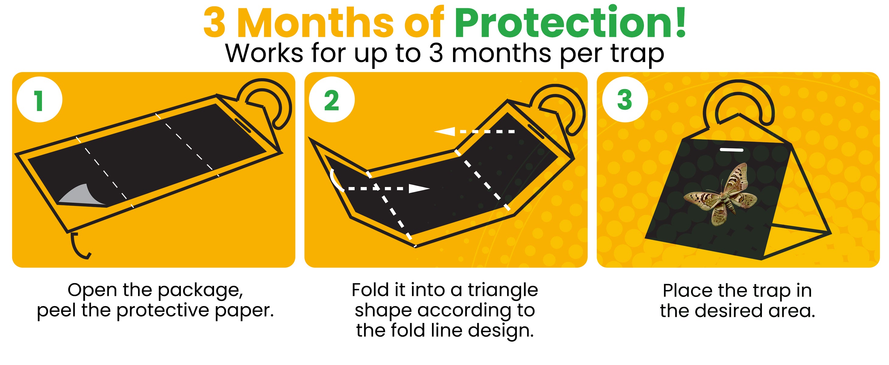 • Industrial Strength Adhesive -  is extremely sticky so moths can never escape, enabling long-term reduction in moth populations. and provide a safe and long term solution.