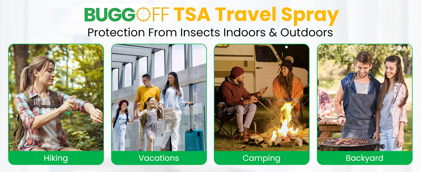 Whether you're heading to the park, on a campaign trip or enjoying TSA compliant your backyard, BUGG OFF spray comes in convenient travel-friendly sizes to suit your needs. Camping, Hiking, Trail Running, Backyard